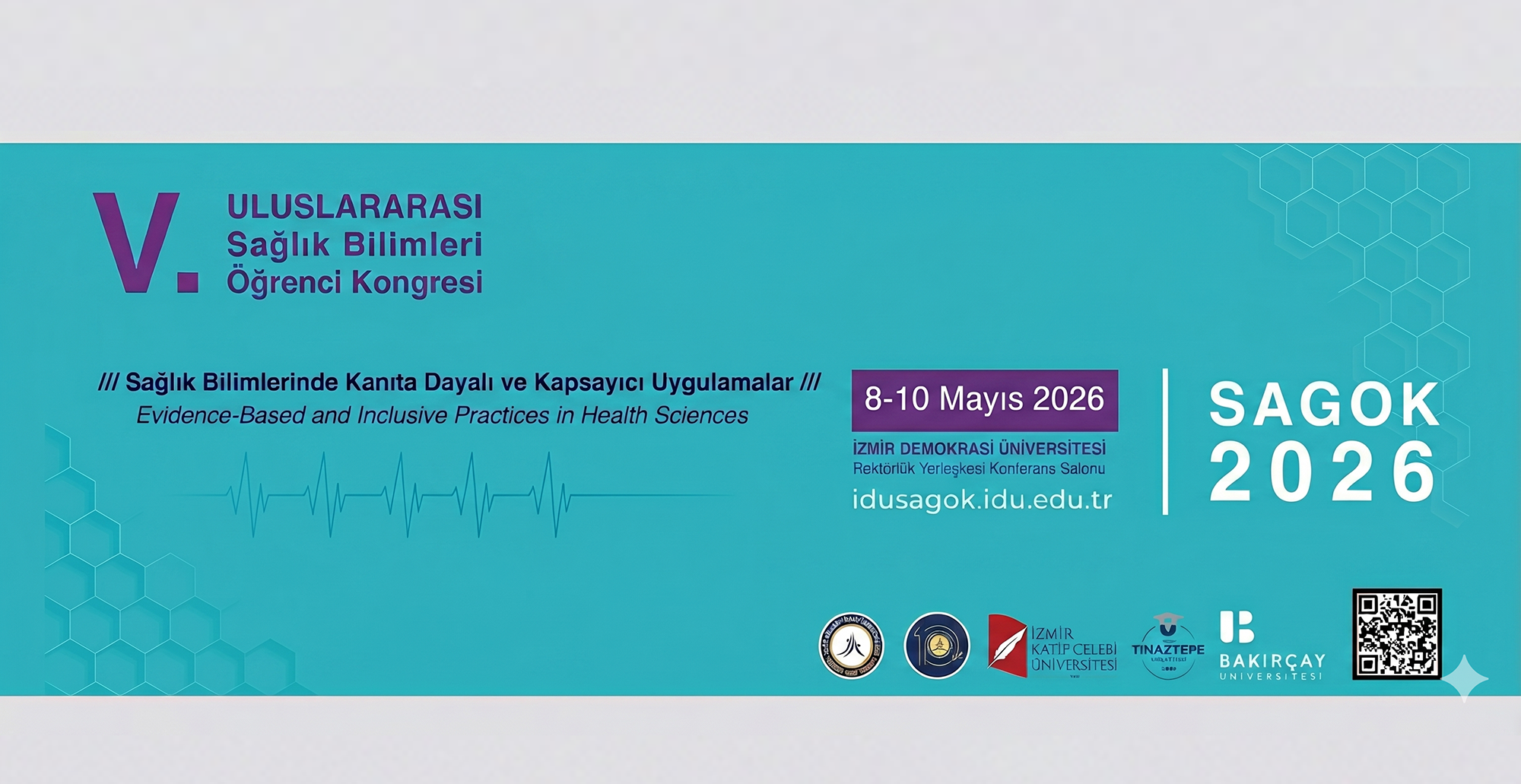 Sizleri Kongre Düzenleme Kurulu olarak 8-10 Mayıs 2026 tarihlerinde İzmir Demokrasi Üniversitesi ev sahipliğinde, İzmir Demokrasi Üniversitesi, İzmir Bakırçay Üniversitesi, İzmir Kâtip Çelebi Üniversitesi ve İzmir Tınaztepe Üniversitesi tarafından düzenlenecek olan “V. Uluslararası Sağlık Bilimleri Öğrenci Kongresi (SAGOK 2026)”ne davet etmekten mutluluk duymaktayız.
